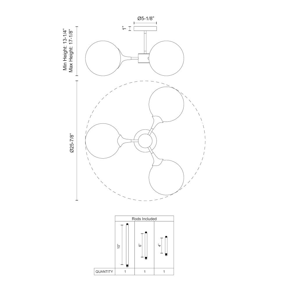 Alora Lighting SF505326AGOP - Nouveau 26-in Aged Gold/Opal Matte Glass 3 Lights Semi Flush Mount