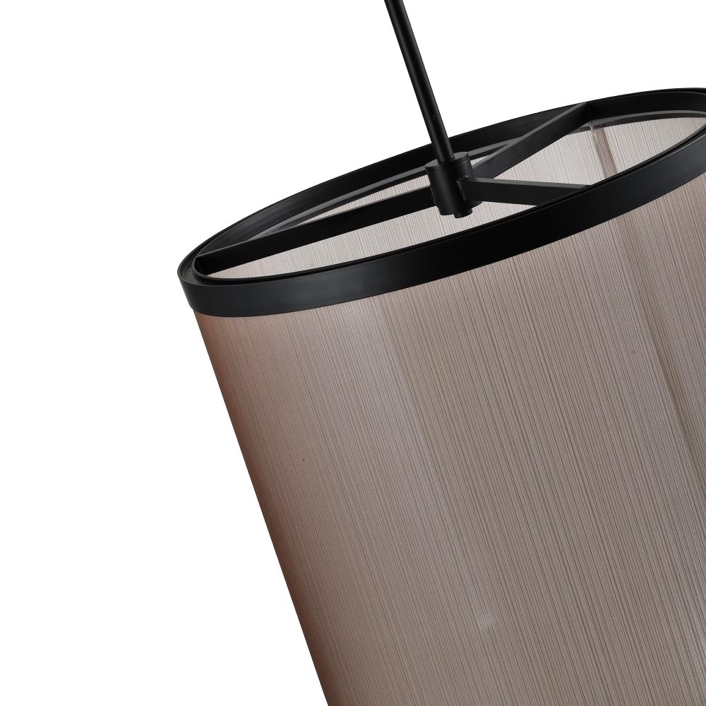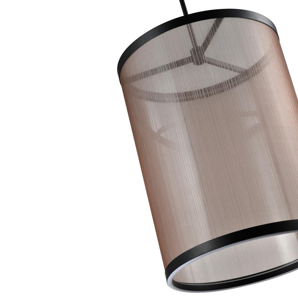 The Cora collection large chandelier enchants with its modern elegance, showcasing a sleek black metal frame paired with a bronze organza hardback shade. This LED chandelier exudes a soft yet striking glow, illuminating through its top and bottom rings to create a warm ambiance. Equipped with a versatile 5CCT switch, it offers customizable lighting to suit any mood or setting. This design seamlessly blends functionality and style, making it a refined statement piece for any interior.
