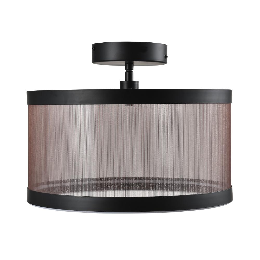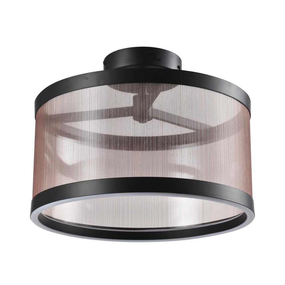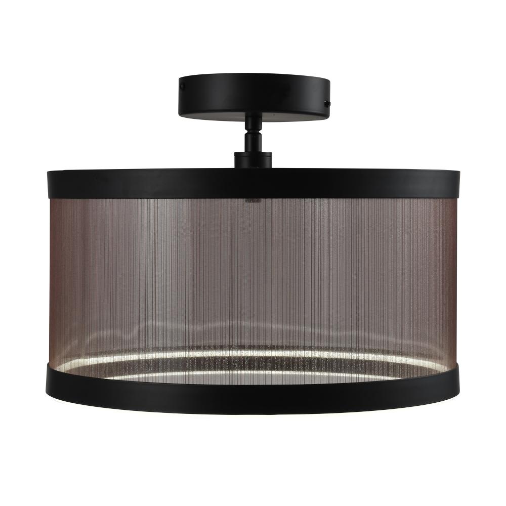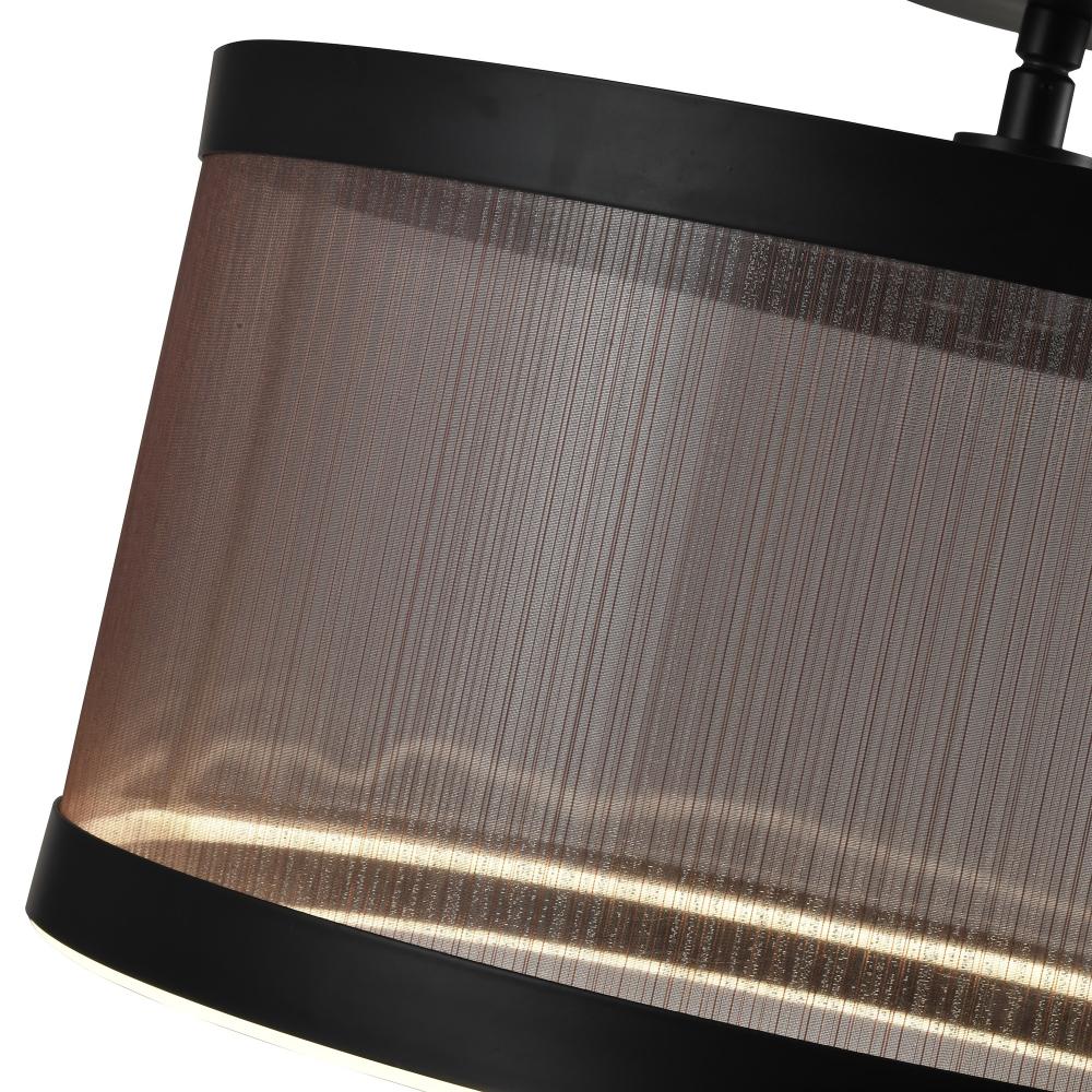 The Cora Collection semi flushmount enchants with its modern elegance, showcasing a sleek black metal frame paired with a bronze organza hardback shade. This LED chandelier exudes a soft yet striking glow, illuminating through its bottom ring to create a warm ambiance. Equipped with a versatile 5CCT switch, it offers customizable lighting to suit any mood or setting. This design seamlessly blends functionality and style, making it a refined statement piece for any interior.