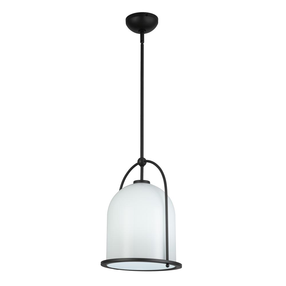 The Dahlia pendant, by designer Kevin Kraemer, evokes a timeless elegance with its seamless blend of modern and classic elements. Its black metalwork cradles the softly curved white glass, creating a silhouette that is both bold and refined. Suspended gracefully, this piece casts a warm glow, transforming any space into an intimate retreat.