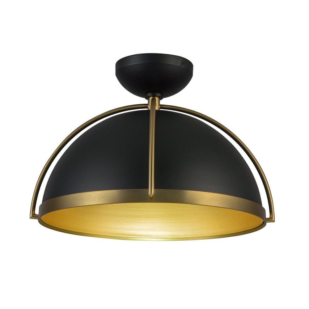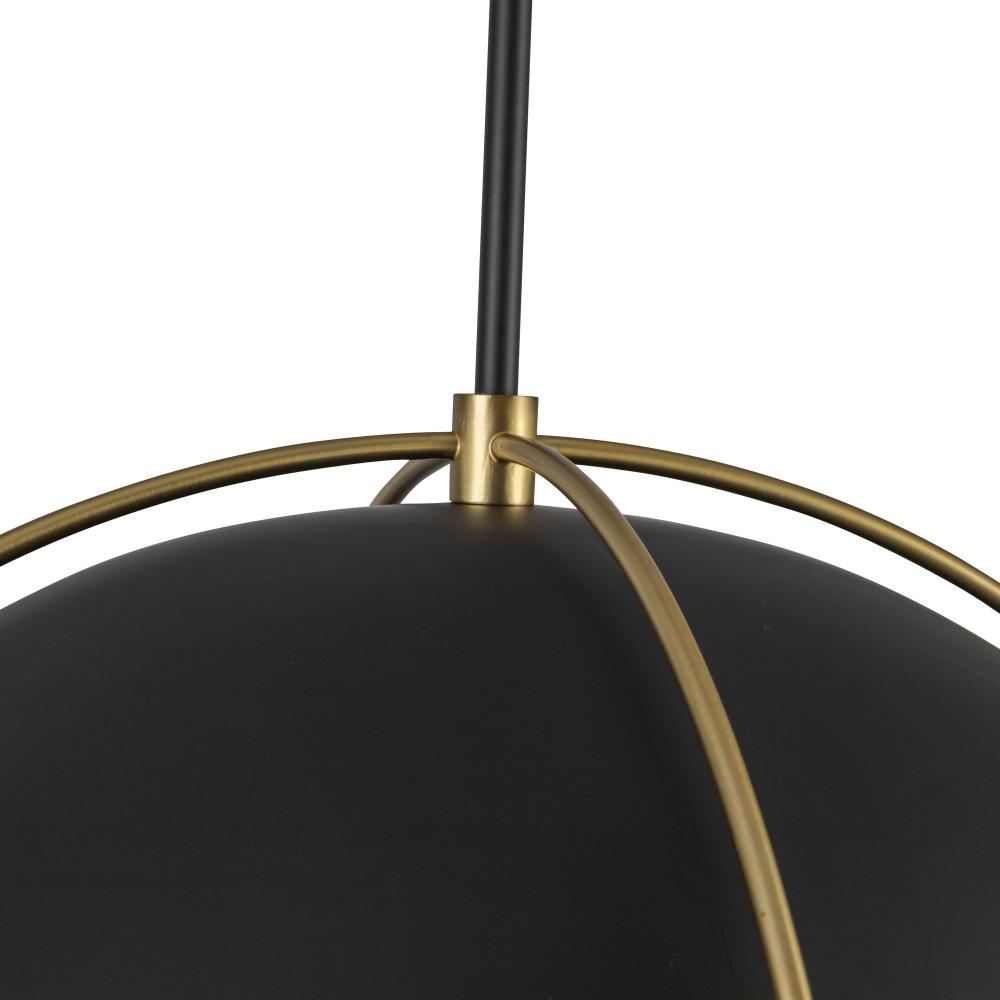 Dahlia 1 Light Pendant 17.6", Black, Brushed Brass