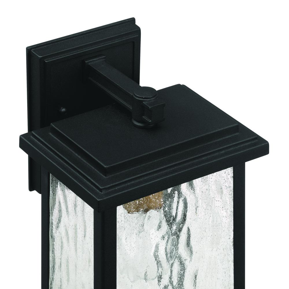 The “Estate” Collection outdoor wall sconce radiates classic allure, with its black metal frame offering a striking contrast to the mesmerizing water glass panels. Encased within, vintage brass candle covers and intricate metalwork glow warmly, evoking a sense of nostalgic charm. Perfect for enhancing any outdoor space, this sconce blends classic sophistication with modern durability.