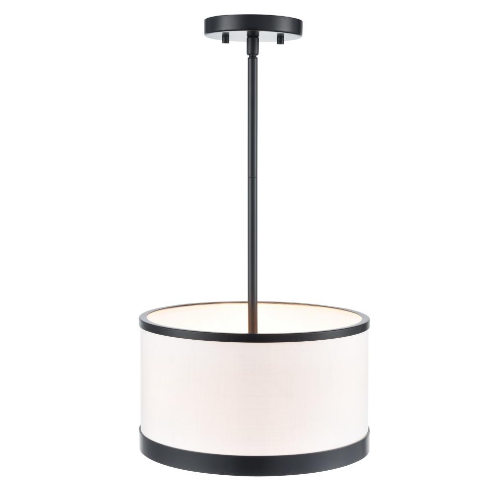 This elegant pendant light from the “High Street” collection, designed by Kevin Kraemer, radiates understated elegance. The hardback linen shade, in a soft eggshell white hue, casts a warm, inviting glow, perfect for elevating any space. Encased in sleek black framing metalwork, the design balances contemporary charm with understated luxury. This model comes with extra rods for any height preference. This model can be a pendant or a close to ceiling semi-flushmount.