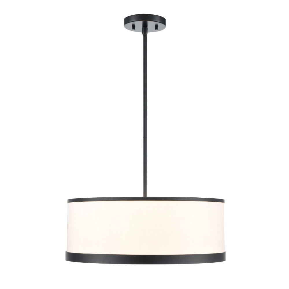This elegant pendant light from the “High Street” collection, designed by Kevin Kraemer, radiates understated elegance. The hardback linen shade, in a soft eggshell white hue, casts a warm, inviting glow, perfect for elevating any space. Encased in sleek black framing metalwork, the design balances contemporary charm with understated luxury. This model comes with extra rods for any height preference. This model can be a pendant or a close to ceiling semi-flushmount.