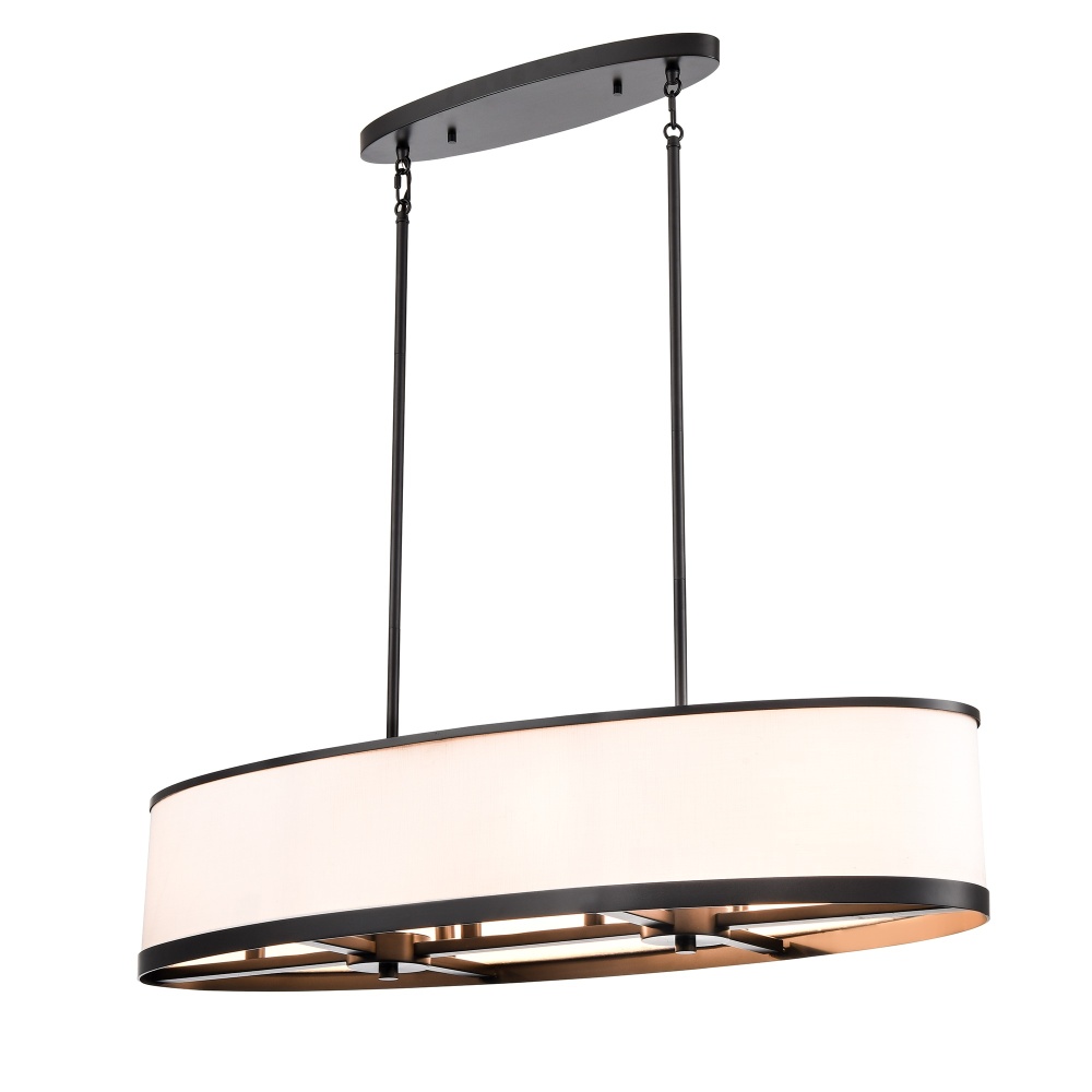 This elegant linear oval chandelier from the “High Street” collection, designed by Kevin Kraemer, radiates understated elegance. The hardback linen shade, in a soft eggshell white hue, casts a warm, inviting glow, perfect for elevating any space. Encased in sleek black framing metalwork, the design balances contemporary charm with understated luxury. This model comes with extra rods for any height preference.