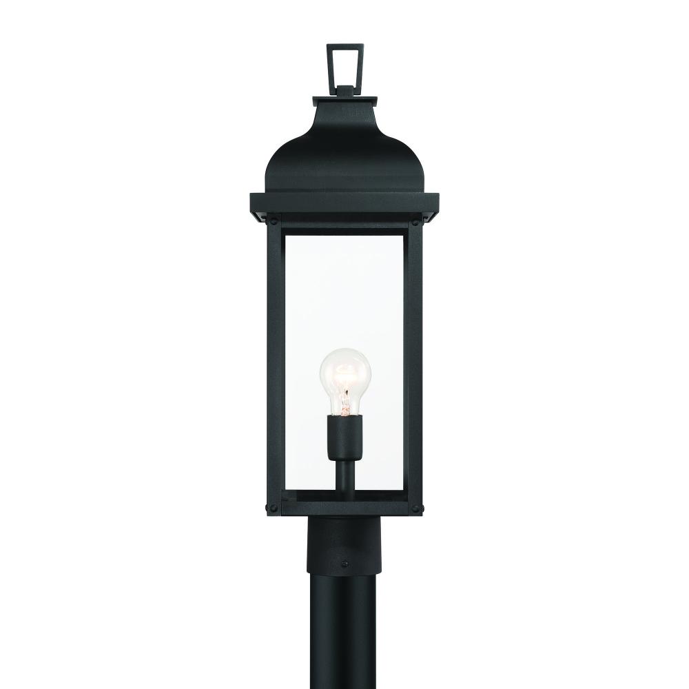 From the Madrid collection, this outdoor post exudes timeless charm with its rich black finish, evoking the romance of old-world craftsmanship. Its clear seeded glassware allows the light to shimmer beautifully, casting a warm, inviting glow. Traditional in design, its clean lines and graceful silhouette seamlessly enhance any outdoor setting.