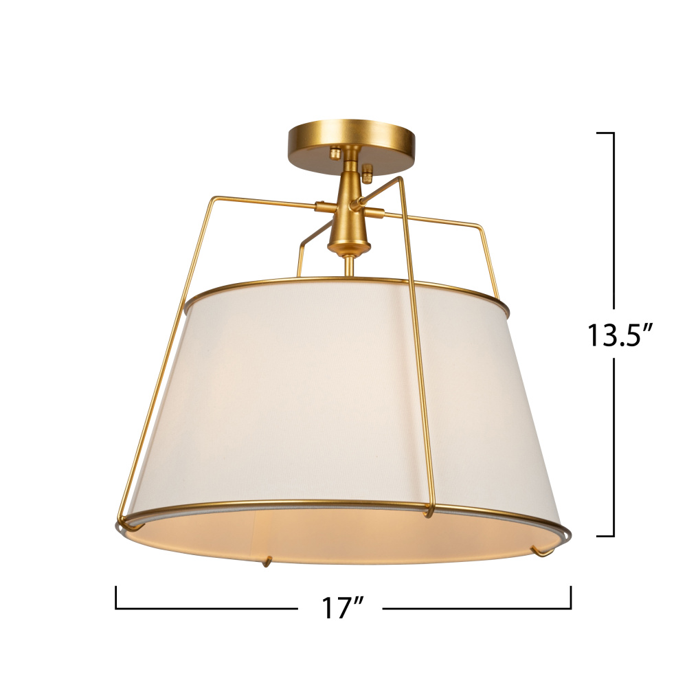 Designed by Steven Sabados (S&C), the Pullman Collection of linen shades is elegantly suspended by brass metal frames, seamlessly combining classic and modern design elements. The high-quality linen shades, gently tapered and expertly crafted, diffuse light to create a warm and inviting ambiance. With their timeless elegance and versatile aesthetics, these shades add a touch of sophistication to any space they grace. The model shown is a semi flushmount. (also available with black metalwork)