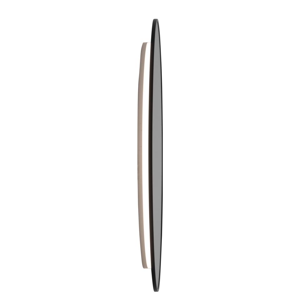 The circular AM326 of the Reflections collection features a very thin black frame and super thin extension from the wall (under 2”). This LED mirror features a white “Smart Touch Dimmer Switch” that gives the user full lighting control from the touch of one button. (This model is 31.5” diameter but also has a smaller sibling at 23.5” diameter)