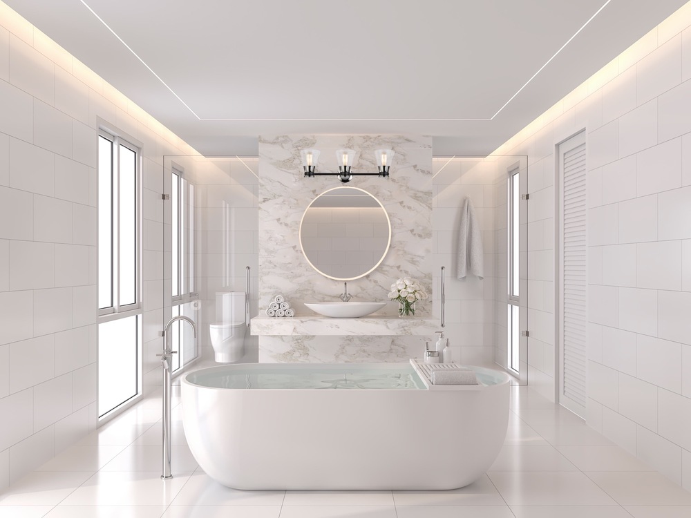 The circular AM323 of the Reflections collection features front LED lighting on the edges and creates a halo effect on the wall. This model has super thin extension from the wall (under 2”). This mirror features a white “Smart Touch Dimmer Switch” that gives the user full lighting control from the touch of one button. (This model is 23.5” diameter but also has a larger sibling at 31.5” diameter)