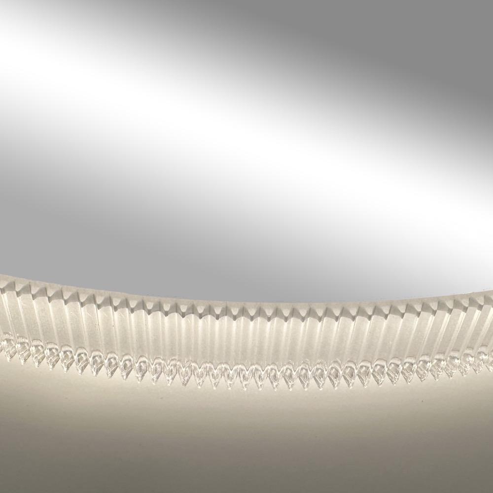 The "Reflection Collection" model shown is circular in design, and has edges that are frosted with a ripple design that illuminates via bright LEDs . It has a built in "Smart Touch" dimmer switch to control the brightness of the LEDs. The switch allows the user to control the brightness or turn the light on/off. (Also ADA compliant)