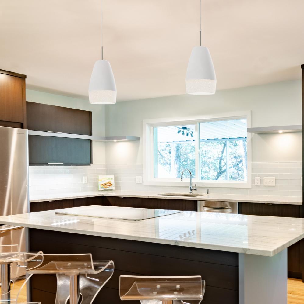 Our Abu 12 Pendant is designed with a satin black conical shade and technologically inner crystal coated transparent bottom glass, effectively concealing a focused downlight light source while highlighting the crystal coating. Produced in a modern yet soft industrial theme, this pendant offers a look that will easily merge into the recent urban decorating trends. The cord pendant fixture is equipped with a 10' SJT cordset. These stylish and functional luminaries are offered in a beautiful brushed Bronze finish.