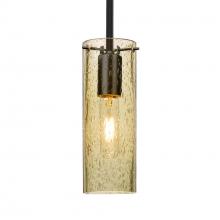 The Juni 10 Pendant is composed of a transparent Gold glass cylinder, with an interesting bubble pattern blown randomly throughout the glass. The pleasing play of light through the bubble accents make for a striking affect, along with the prominent display of the lamp filament behind the glass. The stem pendant fixture is equipped with an adjustable telescoping section, 4 connectable stem sections (3", 6", 12", and 18") and low Profile flat monopoint canopy. These stylish and functional luminaries are offered in a beautiful Black finish.