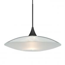 The Spazio Clear/Frost pendant features two softly radiused glasses, fused together to create a refined contemporary look. Our clear prismatic top glass is internally stippled with a contemporary polished outer finish, while the bottom glass has been softly frosted on the outer surface. The result is tranquil bottom glow with a low key harmonious display that exudes a warm mood, contrasted by a dazzling optical effect created by the highly refracting top glass. The 12V cord pendant fixture is equipped with a 10' braided coaxial cord with teflon jacket. These stylish and functional luminaries are offered in a beautiful Black finish.