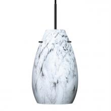 The Pera 9 is a curvy bell-bottomed shape, that fits nicely into any contemporary design. Our Marble Grigio glass is a bright white cased glass, with inner opal and a glossy finish. The white color is accented by flowing marbleized black lines, and nestled between the inner opal and outer clear layers. When lit the glass is vitalizing as well as stylish, that adds appeal to any environment. This blown glass is handcrafted by a skilled artisan, utilizing century-old techniques passed down from generation to generation. Each piece of this décor has its own artistic nature that can be individually appreciated. The cord pendant fixture is equipped with a 10' SVT cordset and an "Easy Install" dome monopoint canopy. These stylish and functional luminaries are offered in a beautiful Black finish.