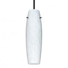 The Suzi is a slender yet shapely handcrafted glass with a open top and bottom. Our Carrera glass is a classic yet modern décor that gives off a soft white light. Clear molten glass is rolled in alabaster powder like frit, and then blown into shape with a semi-clear frosted white inner finish. This décor is created by rolling molten glass in small bits of white called frit. The smooth satin finish on the clear outer layer is a result of an extensive etching process. This blown glass is handcrafted by a skilled artisan, utilizing century-old techniques passed down from generation to generation. Each piece of this décor has its own artistic nature that can be individually appreciated. The stem pendant fixture is equipped with an adjustable telescoping section, 4 connectable stem sections (3", 6", 12", and 18") and low Profile flat monopoint canopy. These stylish and functional luminaries are offered in a beautiful Black finish.