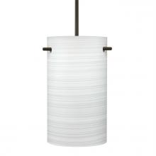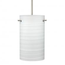 Tamburo is a classic open-ended cylinder of handcrafted glass, a shape that will stand the test of time. Our Chalk glass is a soft white opal cased glass that is handcrafted with spiraling strokes of off-white color, emphasizing the subtle brush pattern. The silvery rippled design is subdued and harmonious. Unlit, it appears as simply a textured surface like spun silk, but when lit the texture comes alive. The smooth satin finish on the clear outer layer is a result of an extensive etching process, with the texture of the subtle brushing. This blown glass is handcrafted by a skilled artisan, utilizing century-old techniques passed down from generation to generation. The cord pendant fixture is equipped with a 10' SVT cordset and a low profile flat monopoint canopy. These stylish and functional luminaries are offered in a beautiful Black finish.