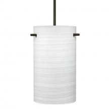 Tamburo is a classic open-ended cylinder of handcrafted glass, a shape that will stand the test of time. Our Chalk glass is a soft white opal cased glass that is handcrafted with spiraling strokes of off-white color, emphasizing the subtle brush pattern. The silvery rippled design is subdued and harmonious. Unlit, it appears as simply a textured surface like spun silk, but when lit the texture comes alive. The smooth satin finish on the clear outer layer is a result of an extensive etching process, with the texture of the subtle brushing. This blown glass is handcrafted by a skilled artisan, utilizing century-old techniques passed down from generation to generation. The cord pendant fixture is equipped with a 10' SVT cordset. These stylish and functional luminaries are offered in a beautiful Black finish.
