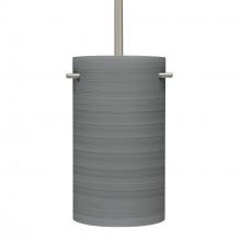 Tamburo is a classic open-ended cylinder of handcrafted glass, a shape that will stand the test of time. Our Titan glass is a soft off-white cased glass that is handcrafted with spiraling strokes of silver, emphasizing the subtle brush pattern. The silvery rippled design is subdued and harmonious. Unlit, it appears as simply a textured surface like spun silk, but when lit the texture comes alive. The smooth satin finish on the clear outer layer is a result of an extensive etching process, with the texture of the subtle brushing. This blown glass is handcrafted by a skilled artisan, utilizing century-old techniques passed down from generation to generation. The stem pendant fixture is equipped with an adjustable telescoping section, 4 connectable stem sections (3", 6", 12", and 18") and low Profile flat monopoint canopy. These stylish and functional luminaries are offered in a beautiful Black finish.