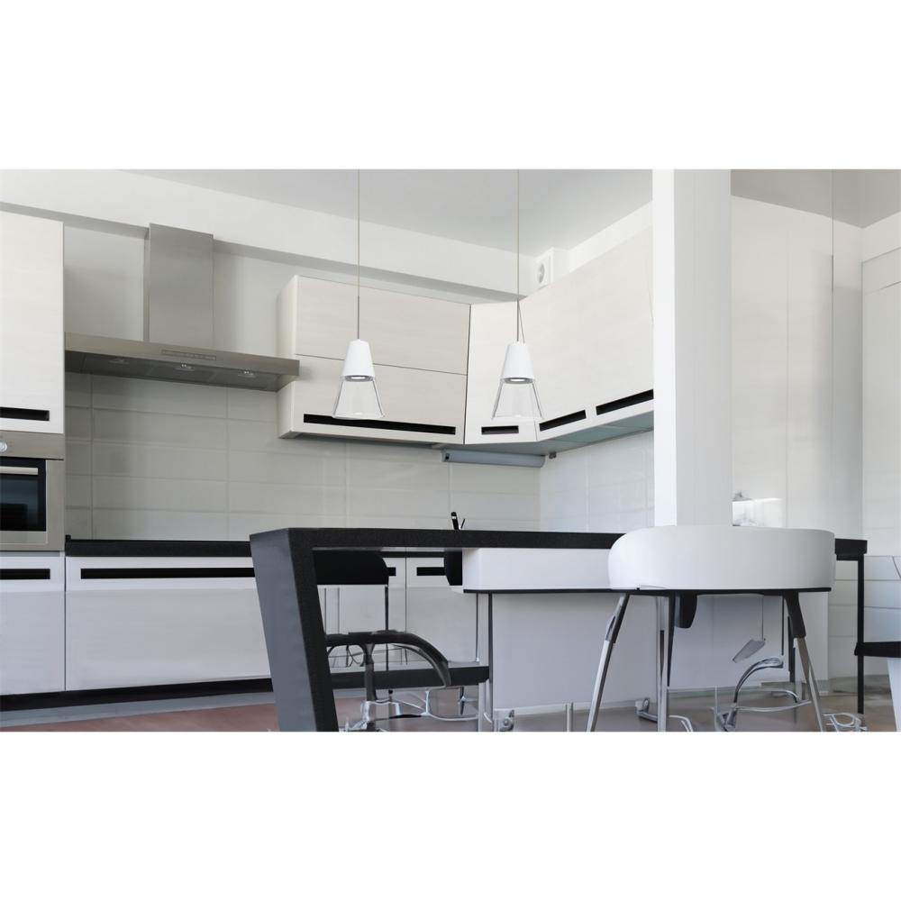 Our Timo 6 LED Mini Pendant is equipped with a white capped conical clear shade, concealing a focused downlight source for effective task lighting. Produced in a modern yet soft industrial theme, this pendant offers a look that will easily merge into the recent urban decorating trends. The clear blown glass is contemporary yet timeless, and will suit any classic or modern decor. When lit, the clear glass shimmers and sparkles with the accents from the light source. This blown glass combination is handcrafted by a skilled artisan, utilizing century-old techniques passed down from generation to generation. The 12V cord pendant fixture is equipped with a 10' coaxial cord with teflon jacket and an "Easy Install" Dome monopoint canopy. These stylish and functional luminaries are offered in a beautiful Black finish.