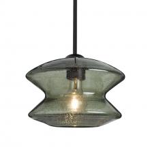 The Zen Moss Pendant is a transitional design composed of a transparent Moss "Hour-Glass" shaped glass , with an interesting bubble pattern blown randomly throughout the glass The pleasing play of light through the shade's bubble accents makes for a striking affect, created by the exposed light source positioned inside the shade. The stem pendant fixture is equipped with an adjustable telescoping section, 4 connectable stem sections (3", 6", 12", and 18") and low Profile flat monopoint canopy. These stylish and functional luminaries are offered in a beautiful Black finish.
