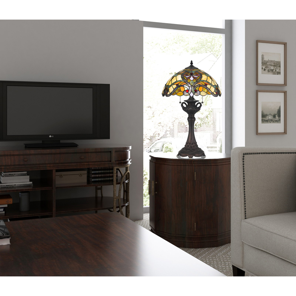 60W x 2 metal/resin Tiffany table lamp with pull chain switches