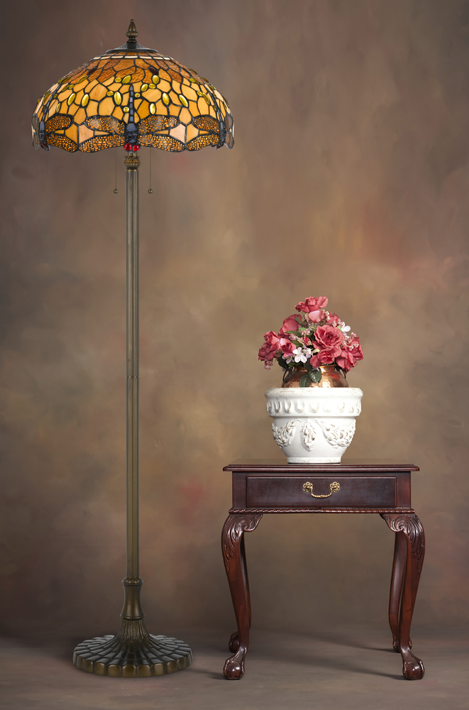 60W x 2 metal/resin Tiffany table lamp with pull chain switches