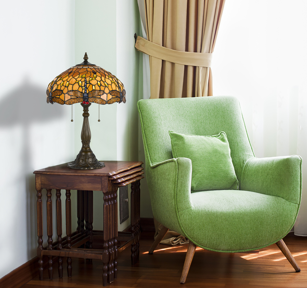 60W x 2 metal/resin Tiffany table lamp with pull chain switches