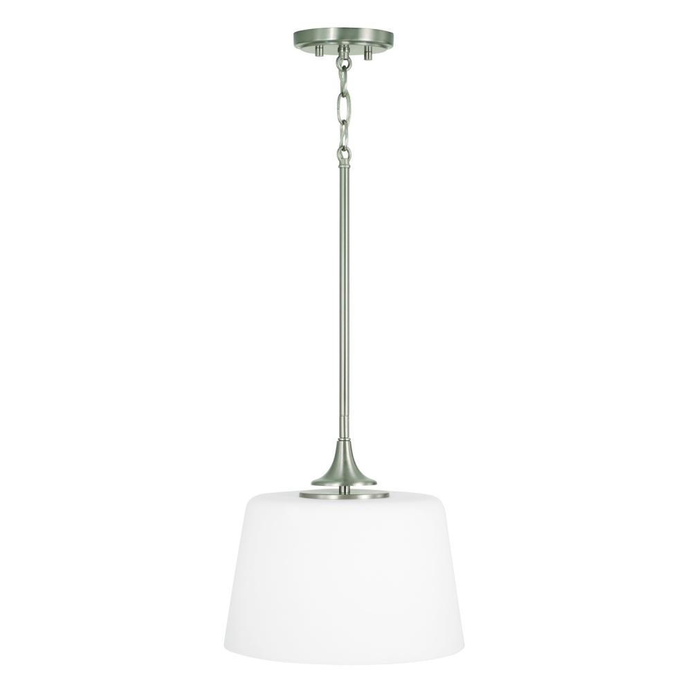 11.75"W x 11.25"H 1-Light Dual Mount Pendant or Semi-Flush in Brushed Nickel with Soft White Glass