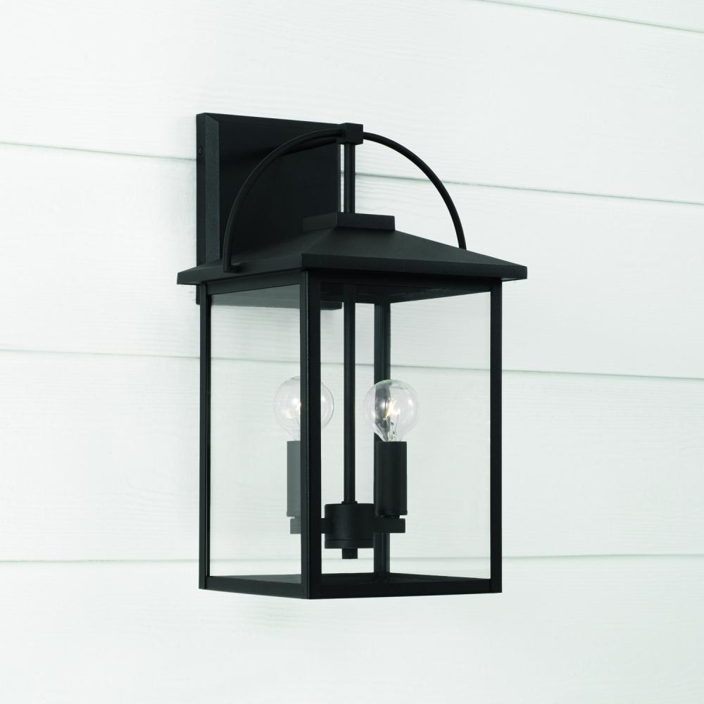 9.5"W x 16.5"H 2-Light Outdoor Wall Lantern in Black with Clear Glass
