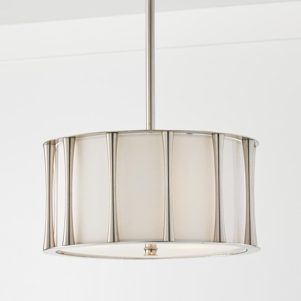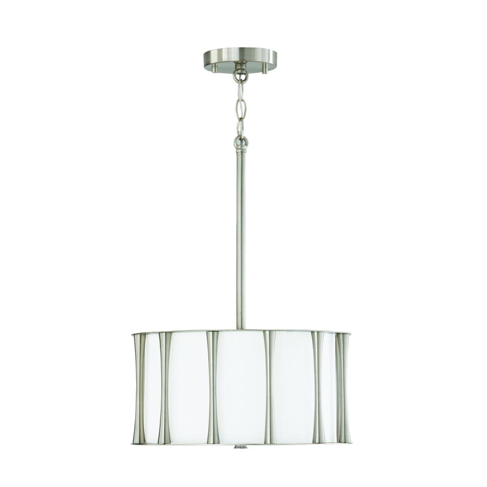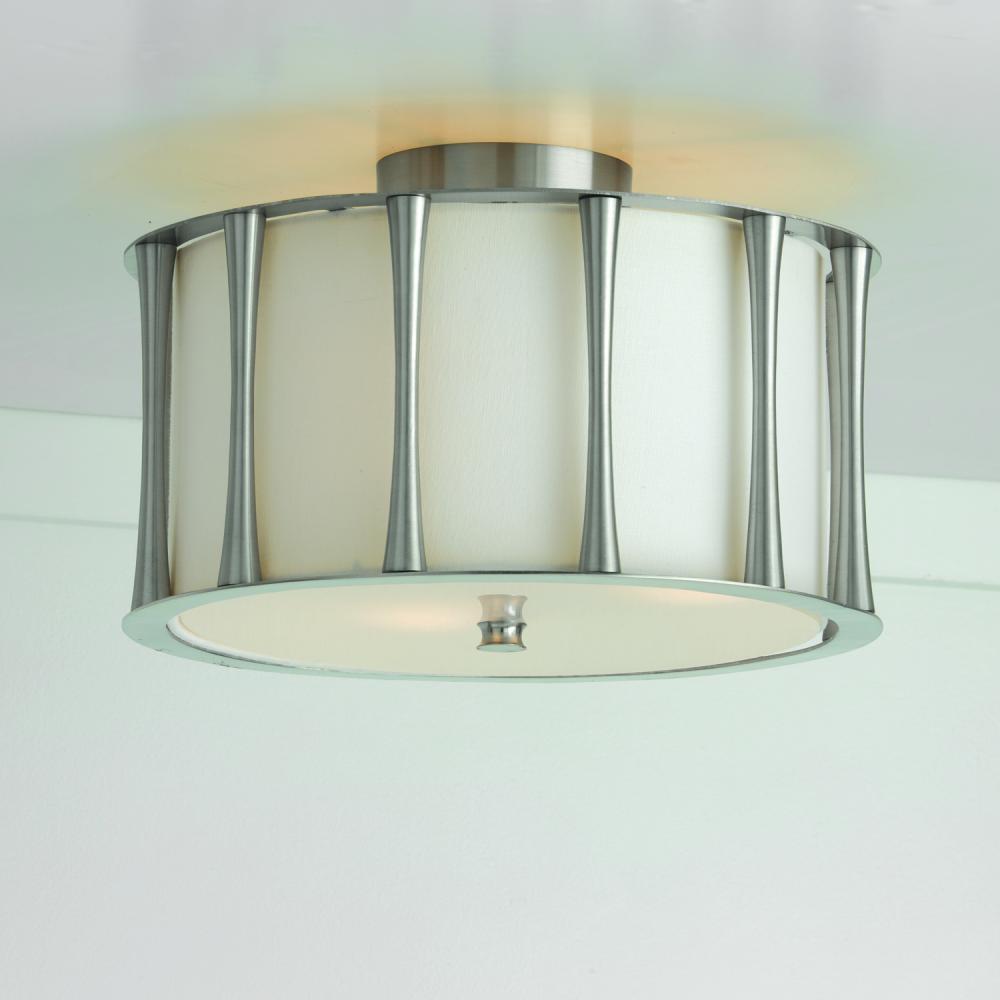 15"W x 9"H 3-Light Semi-Flush in Brushed Nickel with White Fabric Shade