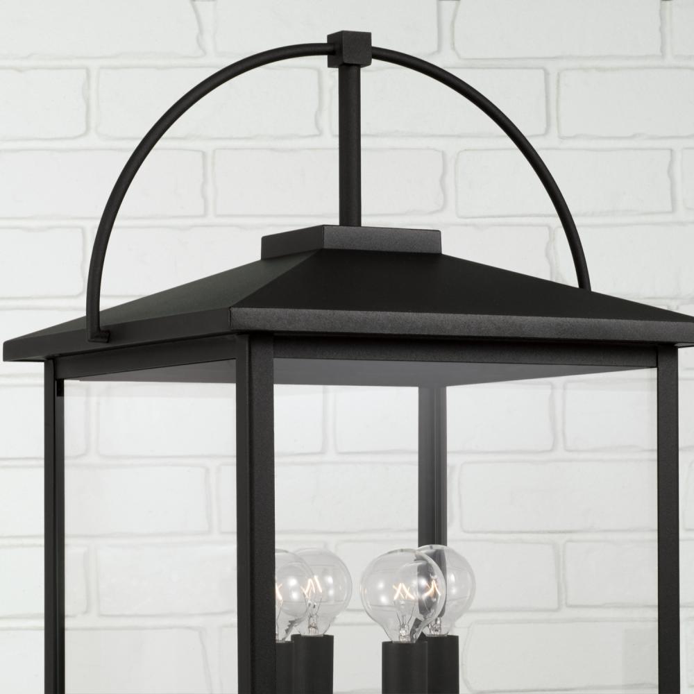 13.25"W x 24.75"H 4-Light Outdoor Post Lantern in Black with Clear Glass