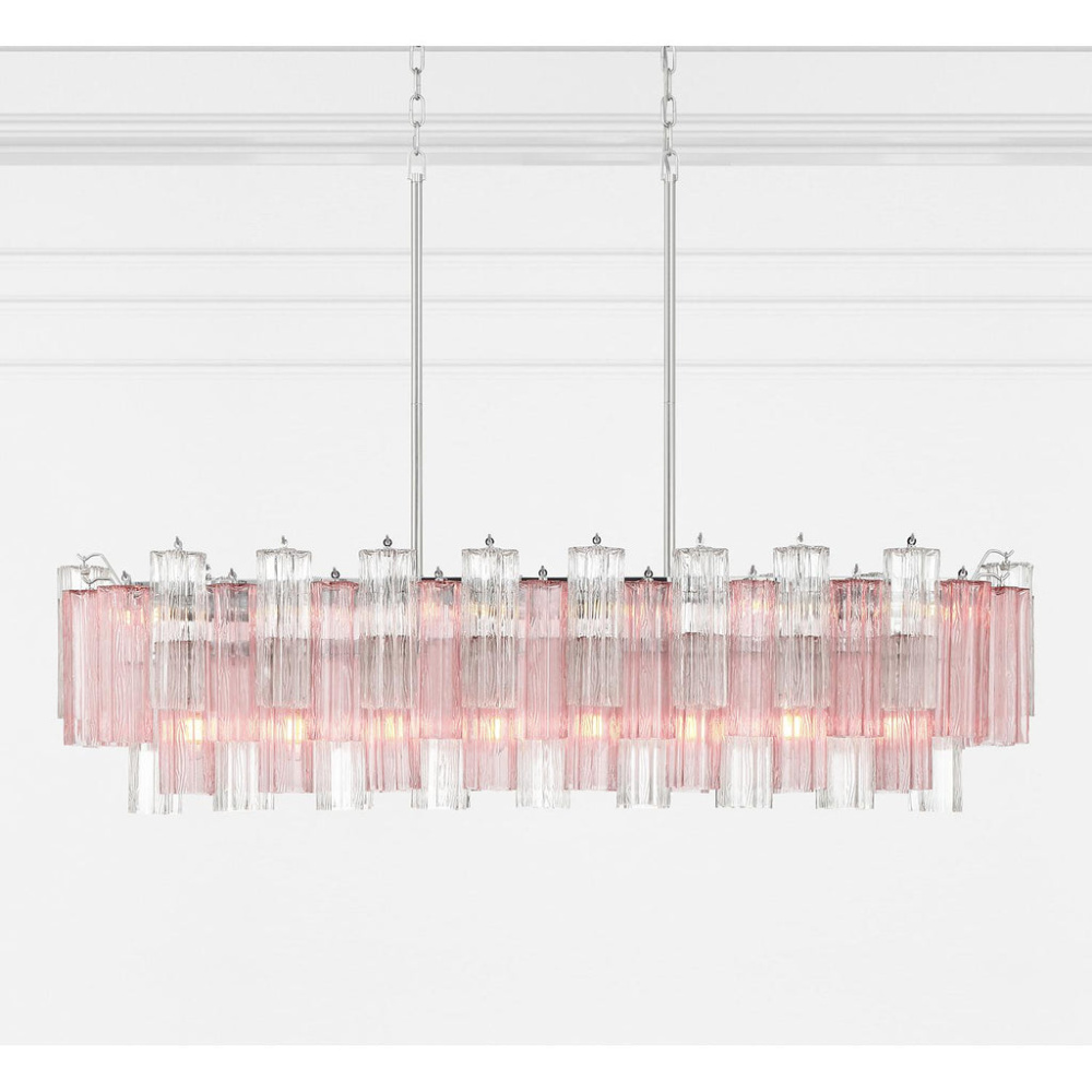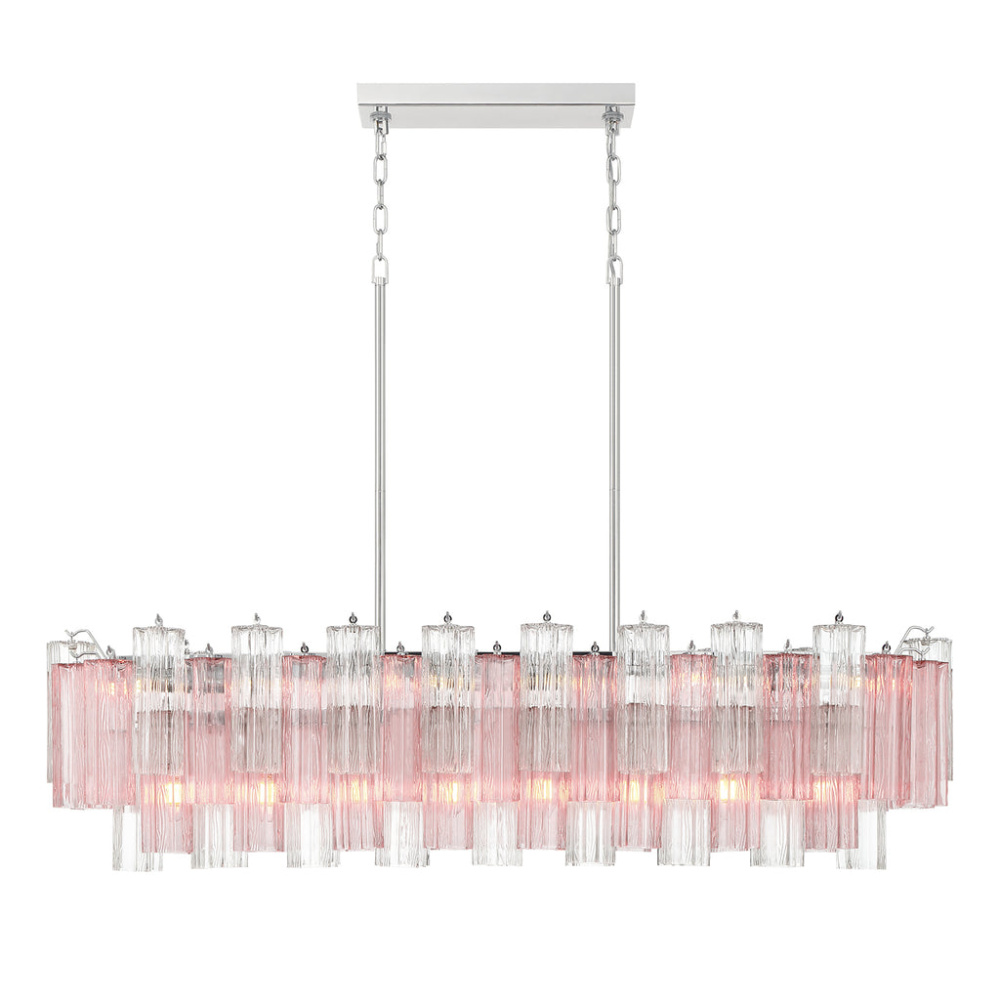 The captivating Addis Lighting Collection is a modern-day interpretation of the iconic mid-century Tronchi chandelier. Inspired by its predecessor's sleek lines and geometric shapes, the Addis features a polished Chrome or Aged Brass metal frame that exudes sophistication and style. Its unique design showcases transparent tiers of textured Tronchi glass tubes, forming a mesmerizing 5-point rounded star shape. Choose from a range of glass colors, including clear, amber, smoke, and white, or the stunning Autumn option, which features a captivating multicolor disposition of amber, clear, and smoke Tronchi glass. The Addis Lighting Collection offers various sizes and finishes, allowing you to find the perfect fit for your space while adding a touch of timeless elegance.