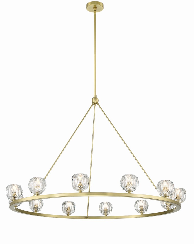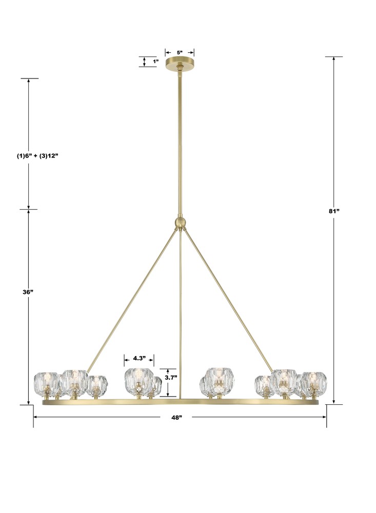Finely crafted with great attention to detail, the Aragon Collection is a mix of industrial meets modern style. The Soft Brass minimalist look includes rods attached to a large frame, facet-cut crystal globes and packed-in G9 Dimmable LED Bulbs, (rated at 3000K, 400 lumens and CRI 80). This functionally timeless fixture can be hung with upward or downward-facing light giving you the flexibility to choose how you would like to set the mood of the room.