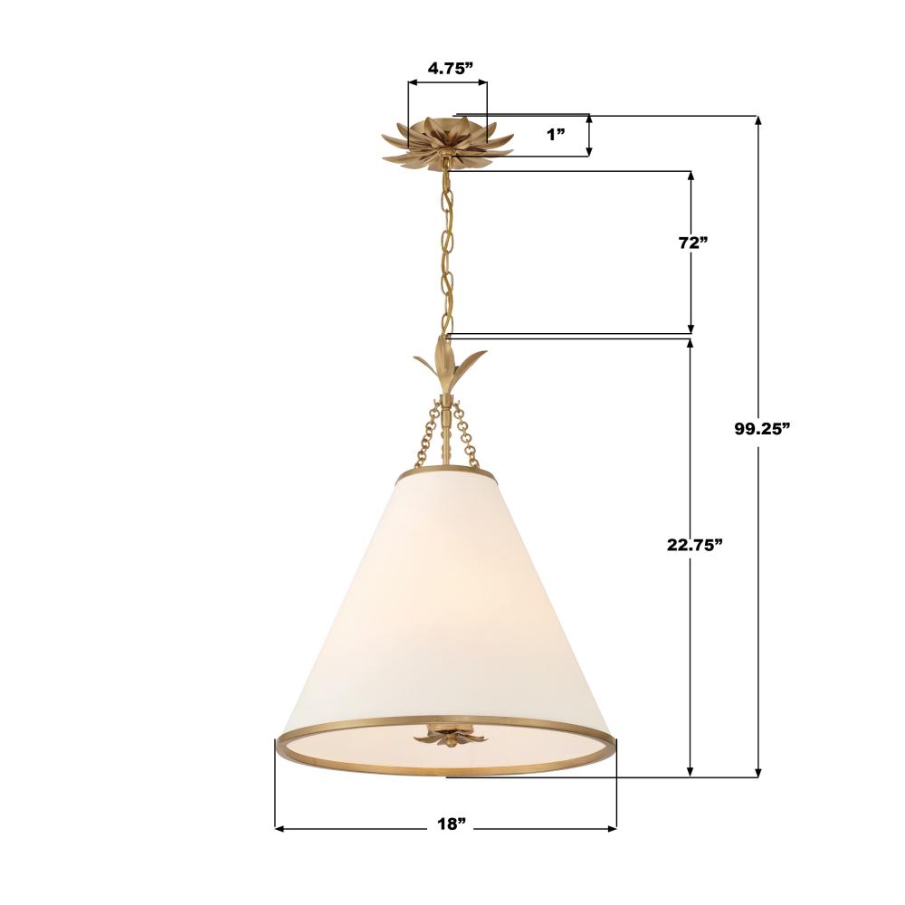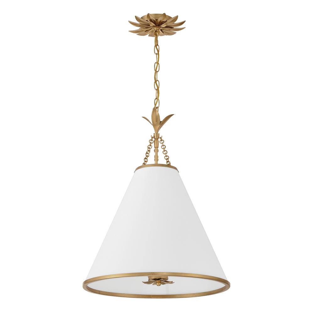 White silk cone shade dressed with delicate metal leaf accents.