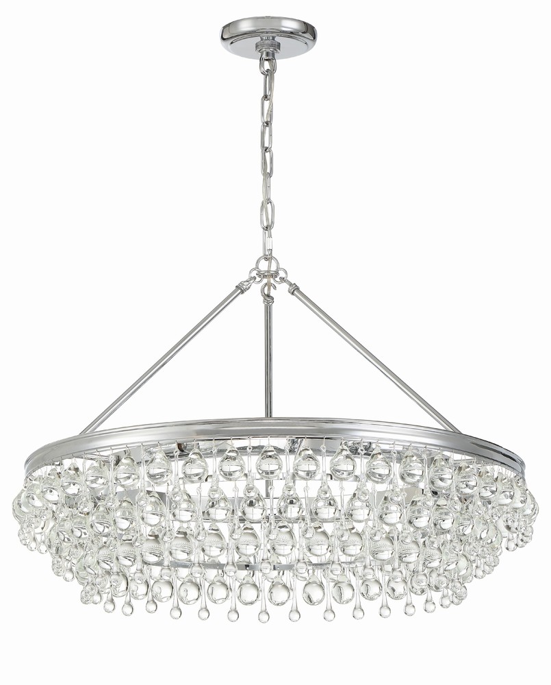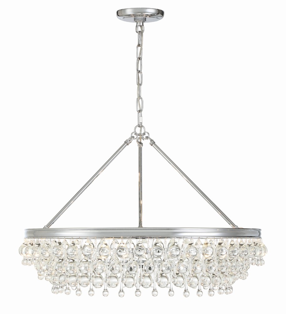 Elegance and glamour will illuminate the room with the Calypso collection. Draped in an abundance of smoothed shaped clear drops and balls, this contemporary collection is a perfect statement to a living room, dining room, bathroom, or entry.