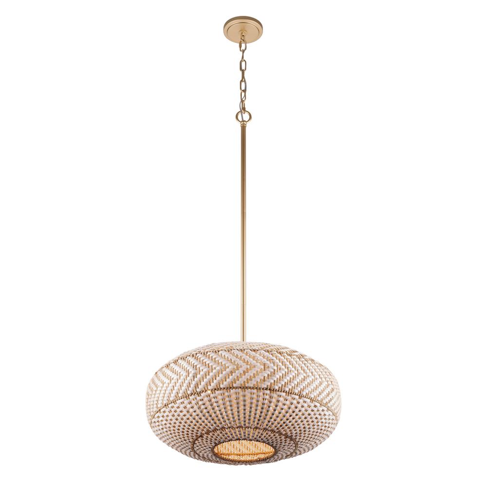 The Zanzibar Collection is an embodiment of laid-back luxe and thoughtful simplicity. By marrying the natural textures of natural rattan with white and/or black lanyard, the fixture introduces a striking color palette with a soft gold finish that instantly brings comfort and style to a living space Handcrafted with precision, the intricate weave introduces texture and depth to your décor. Whether suspended over a breakfast nook or in pairs above a kitchen island, the Zanzibar exudes an earthy, elegant charm that brings an artisanal touch to your decor.