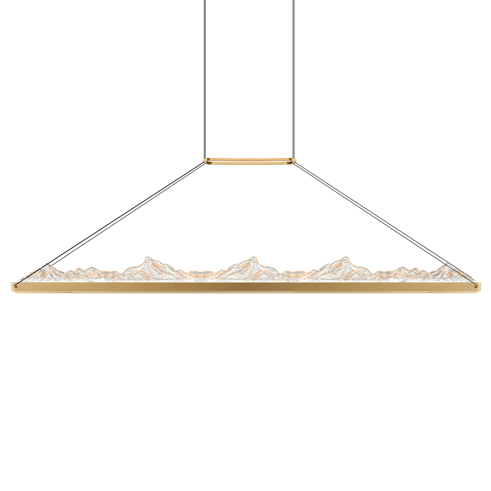Channel the tranquility and beauty of nature with the Himalayas 62'' Integrated LED Chandelier in Brass. This wide-format island light is inspired by the majestic Himalayan peaks and flowing mountain streams. Its linear brass frame and cascading LED glow deliver a refined, organic presence that enhances contemporary interiors with a peaceful, ambient shine. Featuring selectable color temperatures (3000K, 4000K, 5000K), this chandelier adapts easily to your lighting needswhether you're hosting, working, or relaxing. A luxurious statement piece for kitchens, dining rooms, or game areas. Finish: Brass Light Count: Integrated LED Color Temperature: Selectable (3000K / 4000K / 5000K) Light Source: LED, No Bulb Required Adjustable Hanging Height: Yes Material: Metal Style: Modern / Nature-Inspired