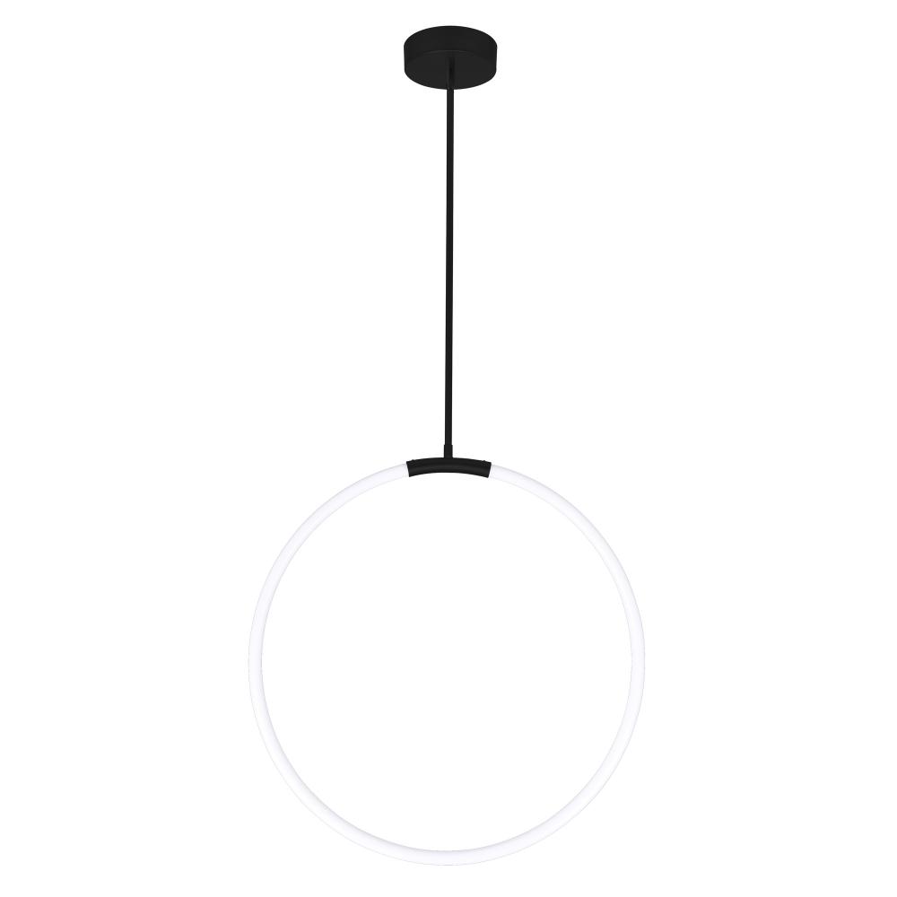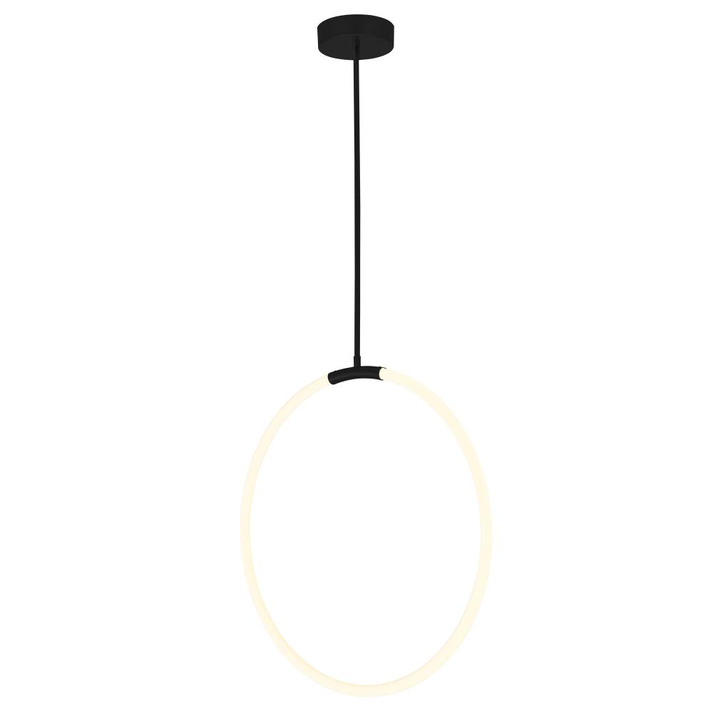 Make a bold, modern statement with the Hoops 24'' LED Chandelier in Black. With its sculptural silhouette, this contemporary pendant light features a single vertical LED ring suspended from a clean black rod. Emitting a soft, ambient glow, this piece works beautifully in entryways, staircases, or any space that could use a touch of refined illumination. Its integrated LED technology ensures energy efficiency and long-lasting brightness, while its minimalist elegance brings visual interest without overwhelming the room. Finish: Black Light Count: Integrated LED Light Source: LED, No Bulb Required Adjustable Hanging Height: Yes Material: Metal and Acrylic Style: Modern / Minimalist / Geometric