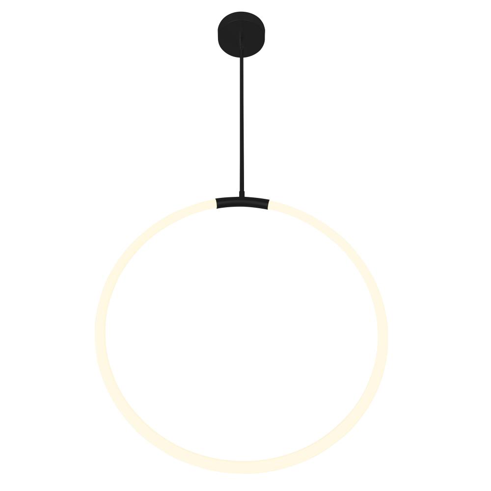 Sculptural LED Design: Features a vertically oriented 24-inch LED ring suspended from a sleek black rod for a striking modern look