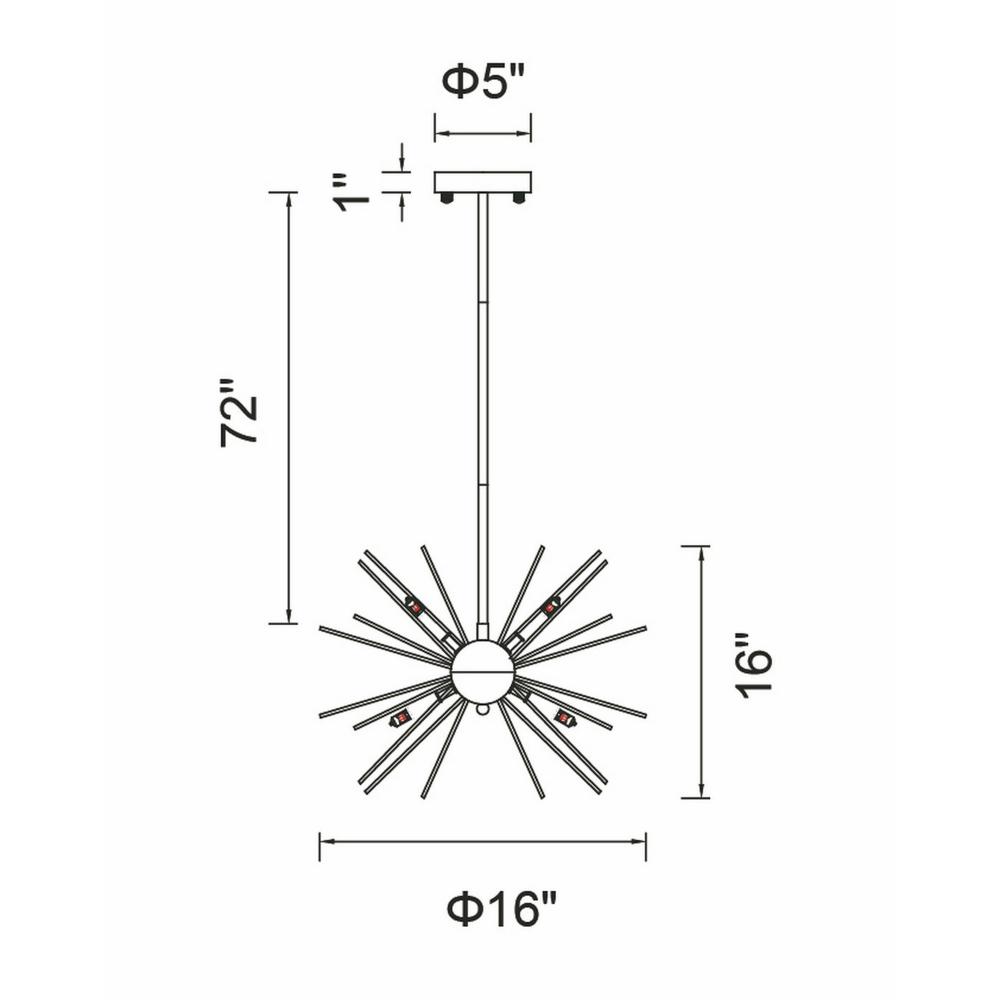 Add bold character to your space with the Savannah 6-Light Chandelier in a sleek black finish. Featuring a striking 16-inch diameter starburst design, this chandelier makes a dramatic statement in any room. Perfect for creating a warm, captivating glow, its ideal for brightening up modern, minimalist spacesespecially when paired for double the impact.
