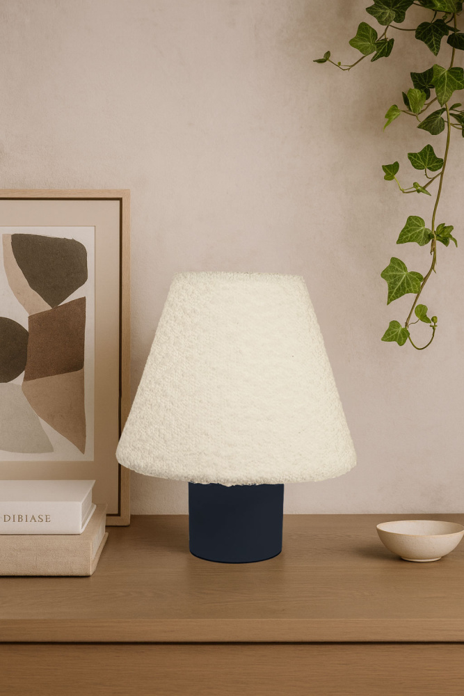 1 Light Incandescent Matte Black Table Lamp with White Boucle Fabric Shade