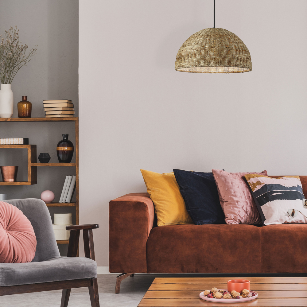 The traditional dome gets a softer finish in the Pourel family of lighting. The effect is organic, with a natural feel that blends with many different styles of décor. A metal frame in neutral matte black drops to a dome frame made of woven seagrass in a natural finish. It adds a neutral tone and soft lines that will create a striking contrast in minimalist modern homes. Pourel offers bright lighting and a subtle sense of style to your kitchen or living room.