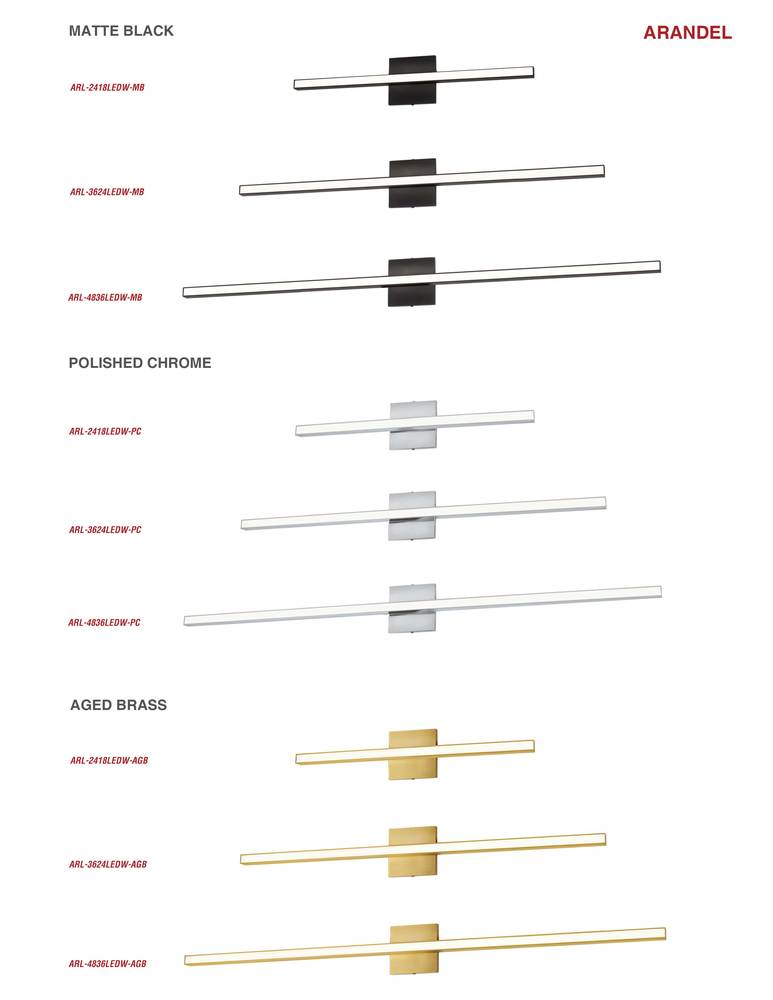 Sweet and simple in concept, Arandel vanity lights take a traditional design and give it smooth modern efficiency, creating a versatile transitional look. The design features an integrated LED light. LED fixtures produce light at up to 90 percent better efficiency than incandescent lighting. A sleek metal frame and base create a look that's understated, yet stylish, with a white diffuser to create face-friendly lighting. It's elegant in its simplicity. With its discrete silhouette, Arandel lighting will enhance a foyer or hallways as well as a bathroom.