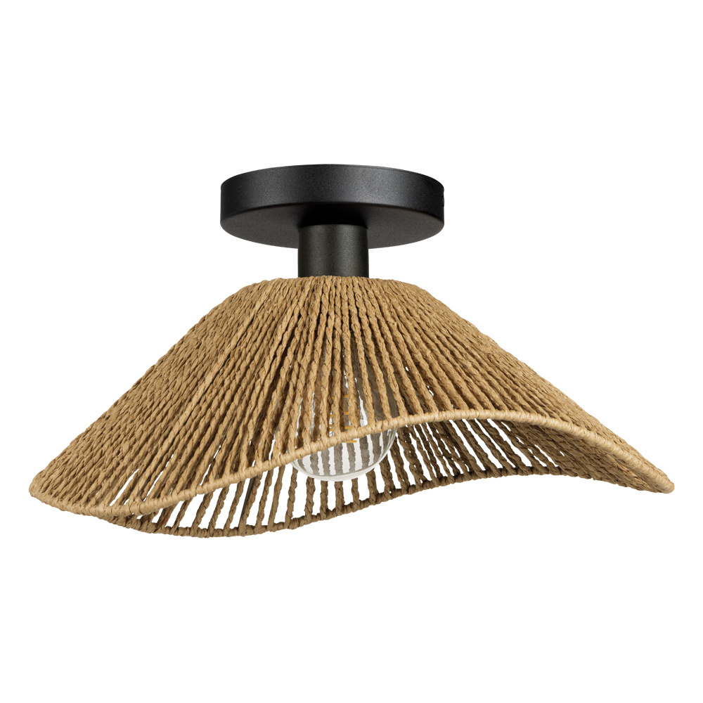 1 LT Dual Mount Pendant or Ceiling Light w/ Black Finish & Natural Rope Shade