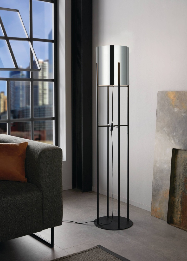 1 LT Floor Lamp w/ Black Finish & Metalic moked Glass Shade