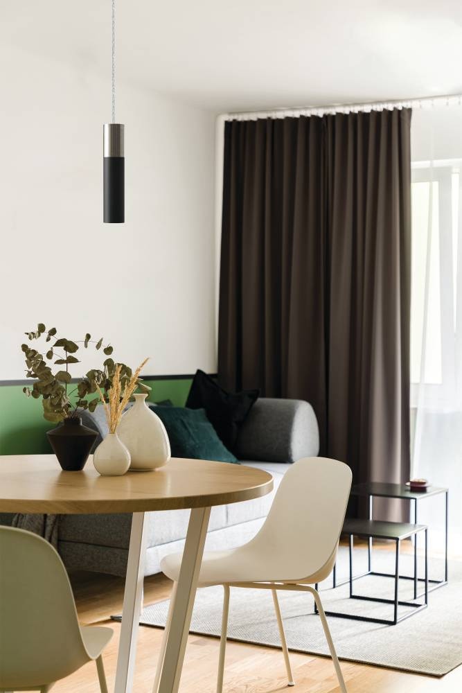 1 LT Mini Pendant w/ Matte Nickel Finish & Matte Black Shade w/ Matte Nickel Accent