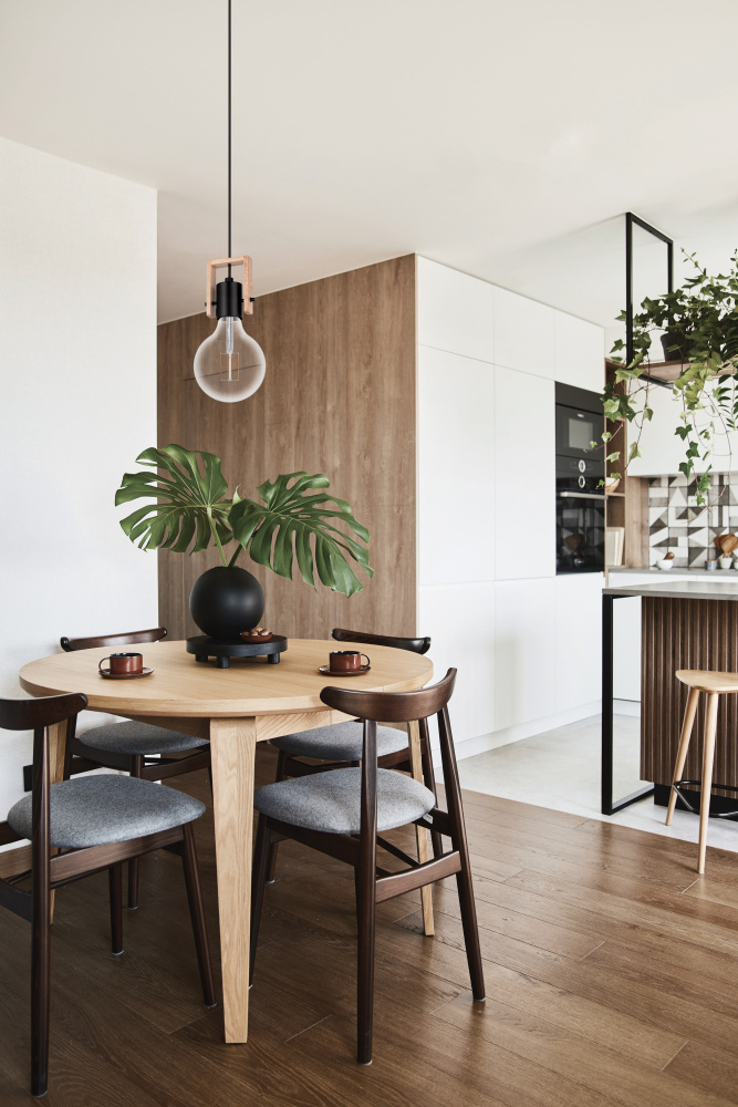 1 LT Open Bulb Mini Pendant w/ Black & Wood Finish