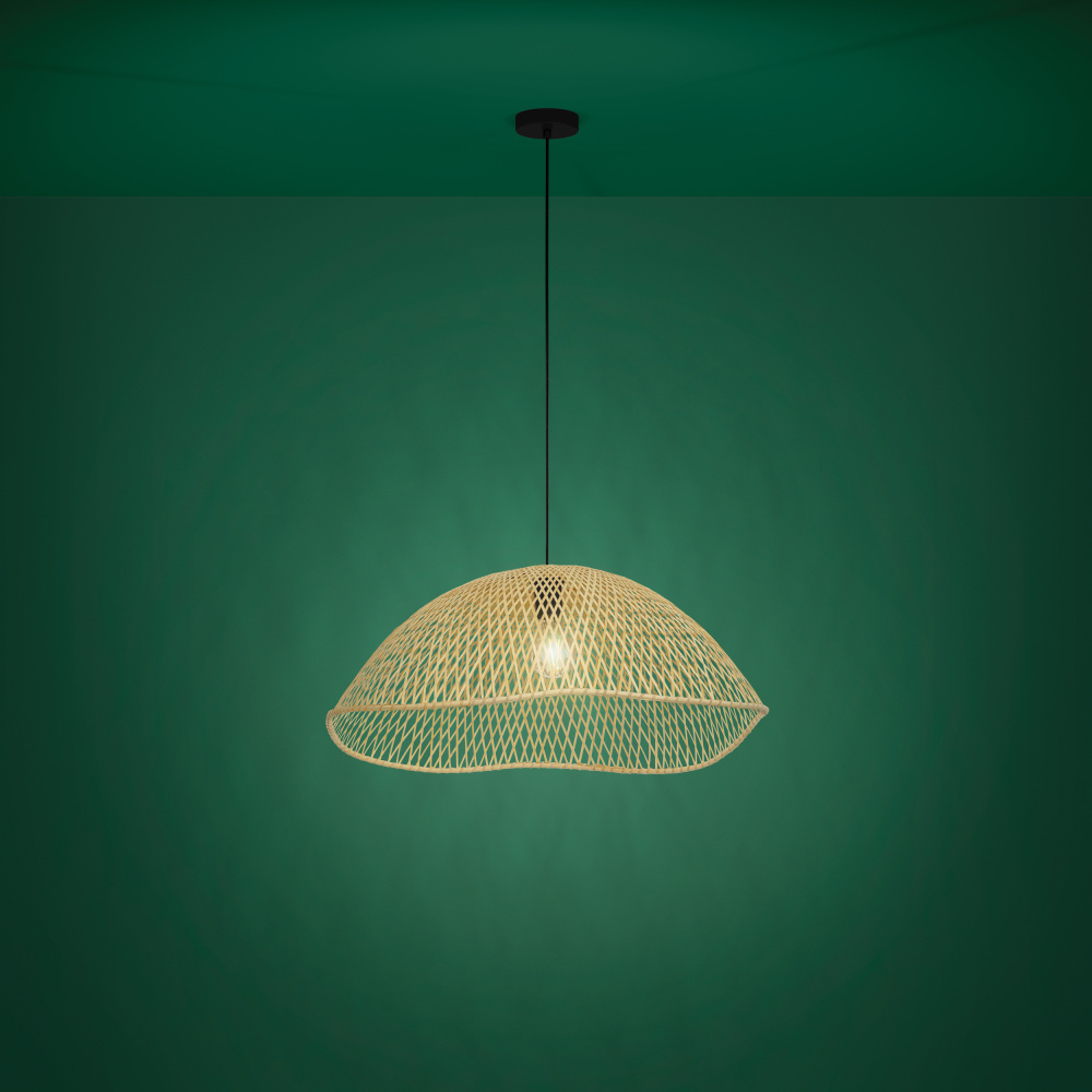 1 LT Pendant w/ Matte Black Finish & Natural Color Wicker Shade