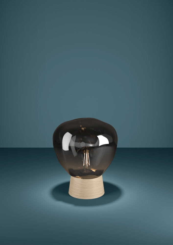 1 LT Table Lamp w/ Wood Finish & Metallic Smoked Glass Shade