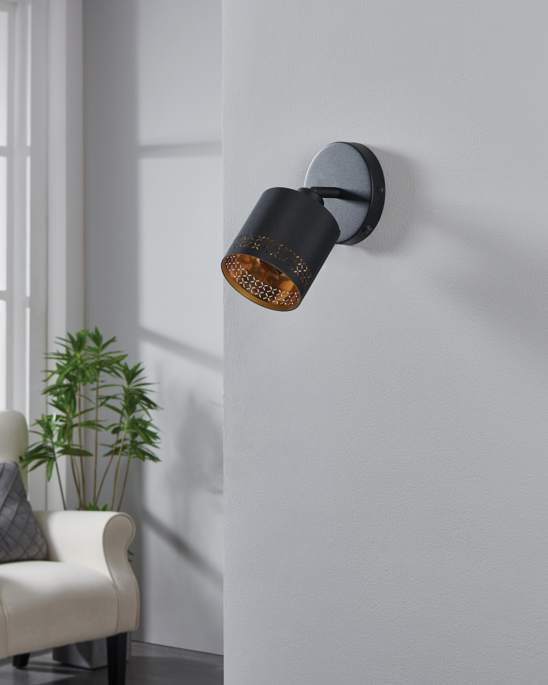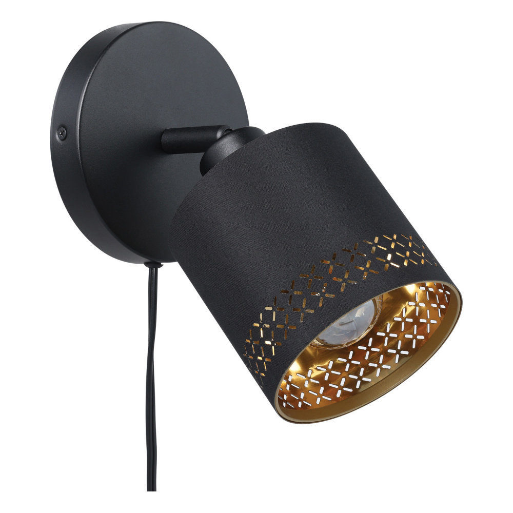 1 LT Spot Wall Light w/ Black Finish & Black w/ Gold Interior Fabric Shade
